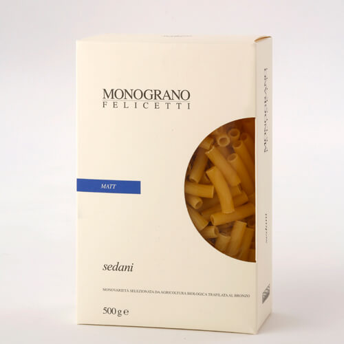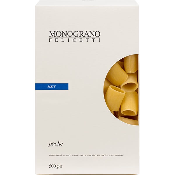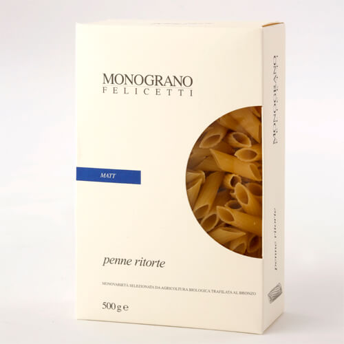 冬の寒さが厳しいために害獣や害虫が少ない、恵まれた環境のオーガニックパスタ工房で作られるこのパスタの味わいは、原種の強い小麦の味と緻密な練り、銅製の型(ブロンズダイス)の使用や低温乾燥のおかげで、繊細だけど濃くて力強い味です。
