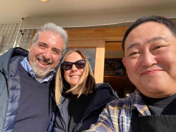ヒナタノの看板商品ブルーナ家のオリーブオイルの生産者ブルーナ夫妻が、鎌倉のお店を突然訪問してくれた時の一コマ。ビックリしたやら嬉しいやらで、顔パンパン笑